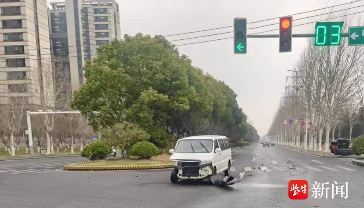 接到报警后,江宁秣陵交警中队民警立即前往事故现场处置。民警在现场看到,一辆黑色小轿车左前保险杠及大灯损坏,一辆白色轿车的前保险杠脱落,车头右侧碰撞严重,现场一地碎片。
